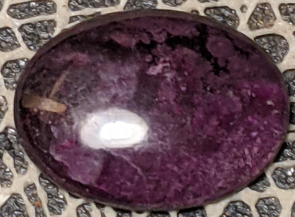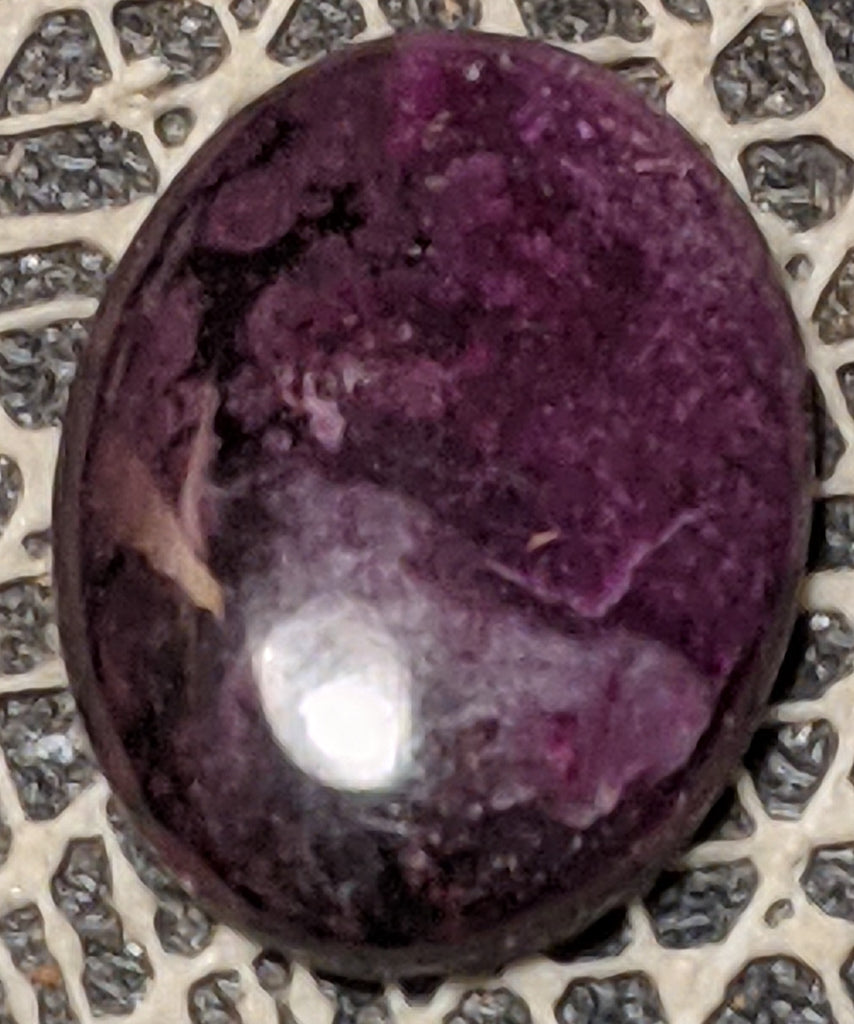 Sugilite Cabochon from Wessels Mine, South Africa 10.5 cts  Measures 2 x 1.5 x 0.4 cm.  $3.50 U.S. $20.00 International shipping. Stock # 57 Free combined shipping.