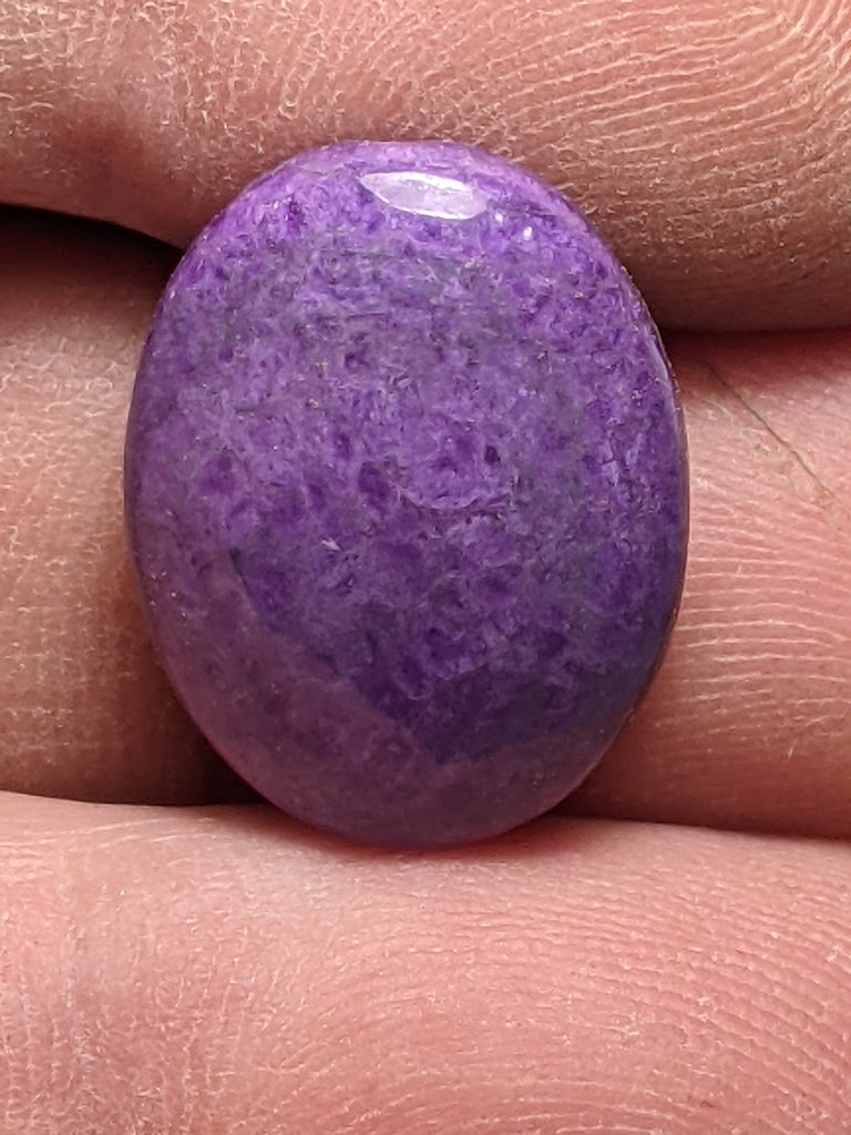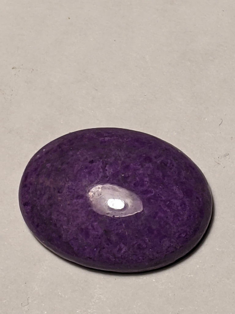 Sugilite Cabochon from Wessels Mine, South Africa 12 cts  Measures 2 x 1.5 x 0.5 cm.  $3.50 U.S. $20.00 International shipping. Stock # 47 Free combined shipping.