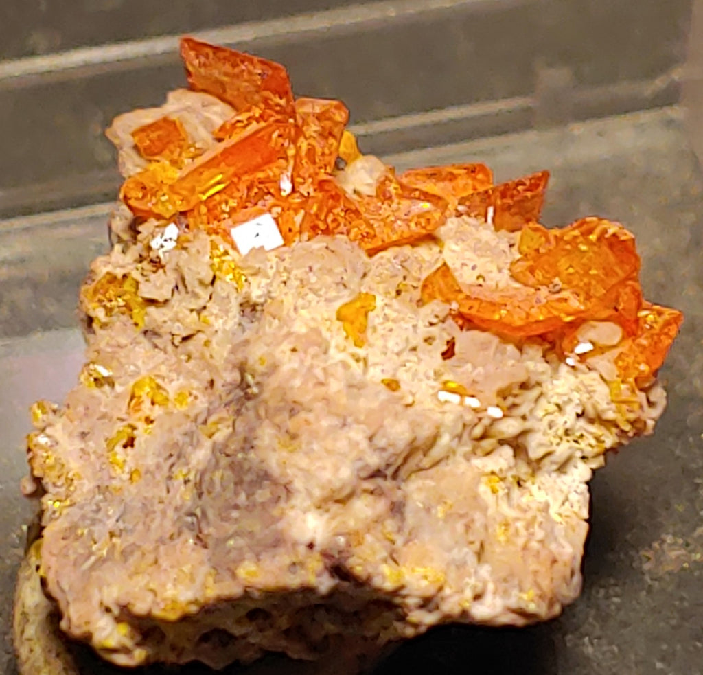 Wulfenite and Mimetite from Rowley Mine, Maricopa County, Arizona.