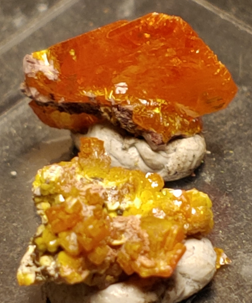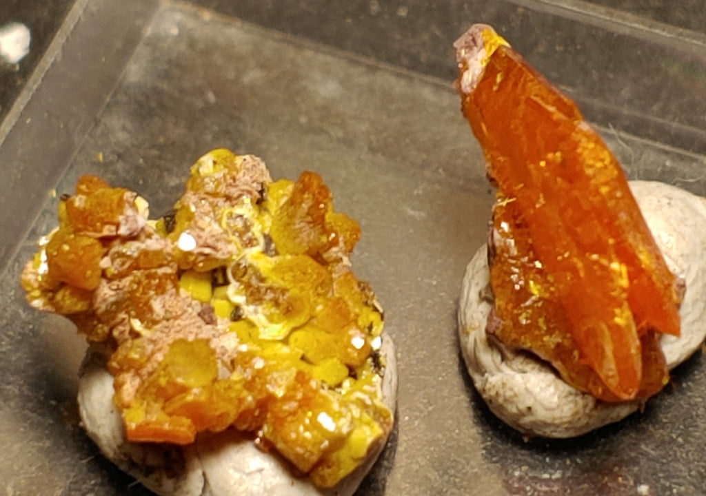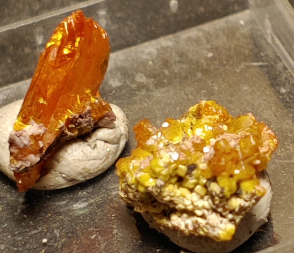 2 pieces Wulfenite and Mimetite from Rowley Mine, Maricopa County, Arizona.