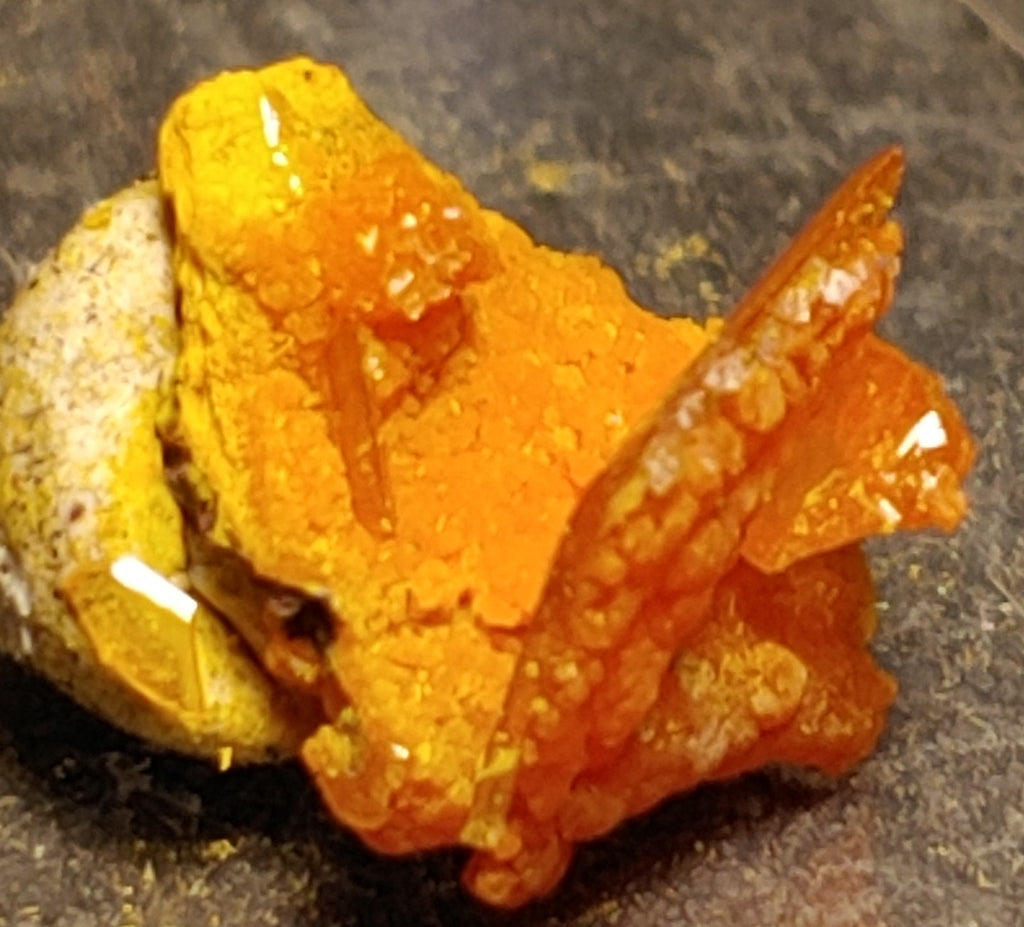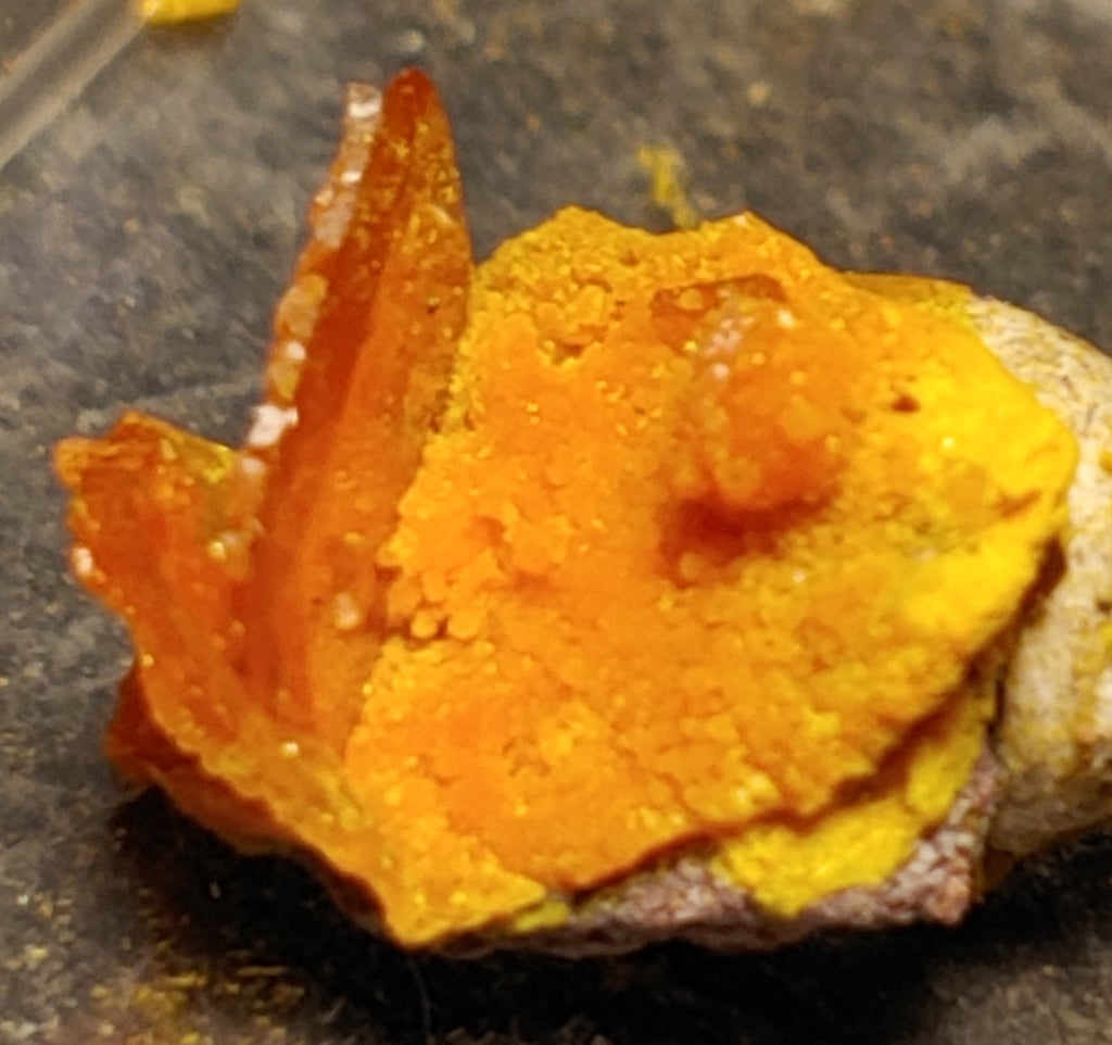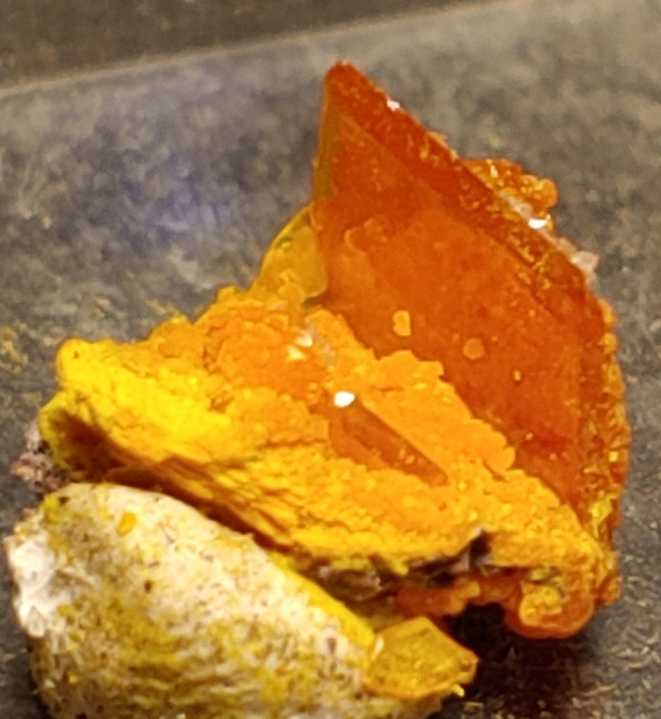 Wulfenite and Mimetite from Rowley Mine, Arizona. 1.1 cm #4074
