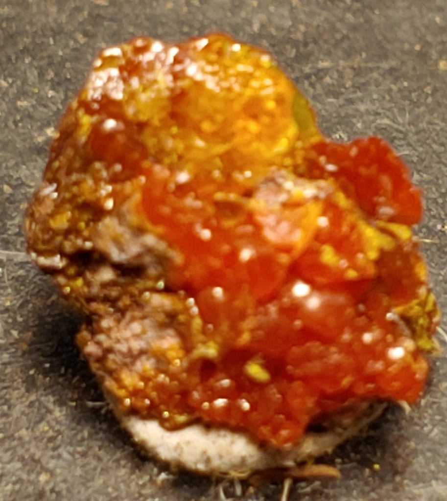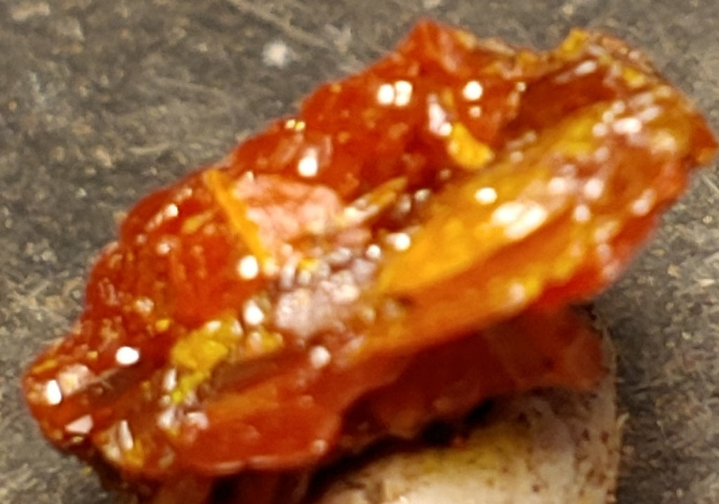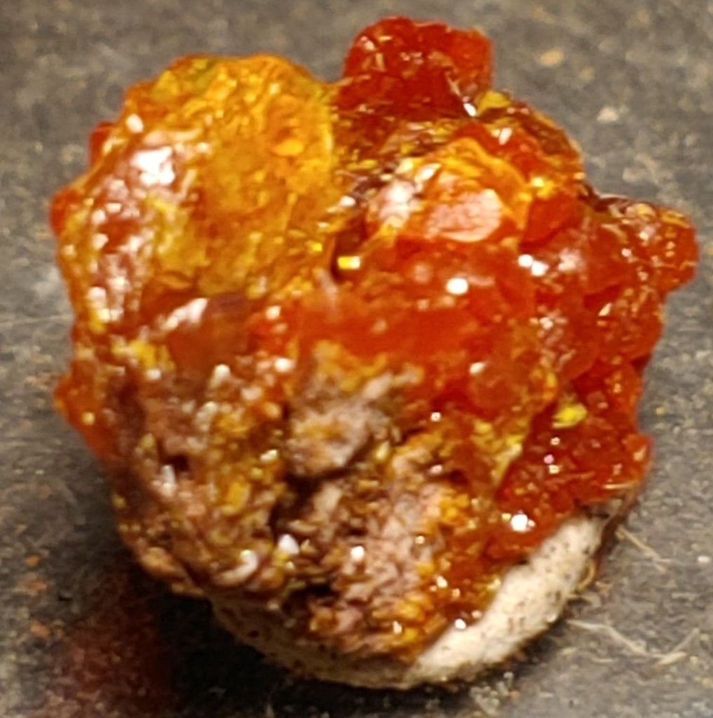 Wulfenite and Mimetite from Rowley Mine, Maricopa County, Arizona. Measures  0.9 x 0.8 x 0.7 cm. Comes in a clear plastic case for viewing. Stock #4071 Free Combined Shipping.